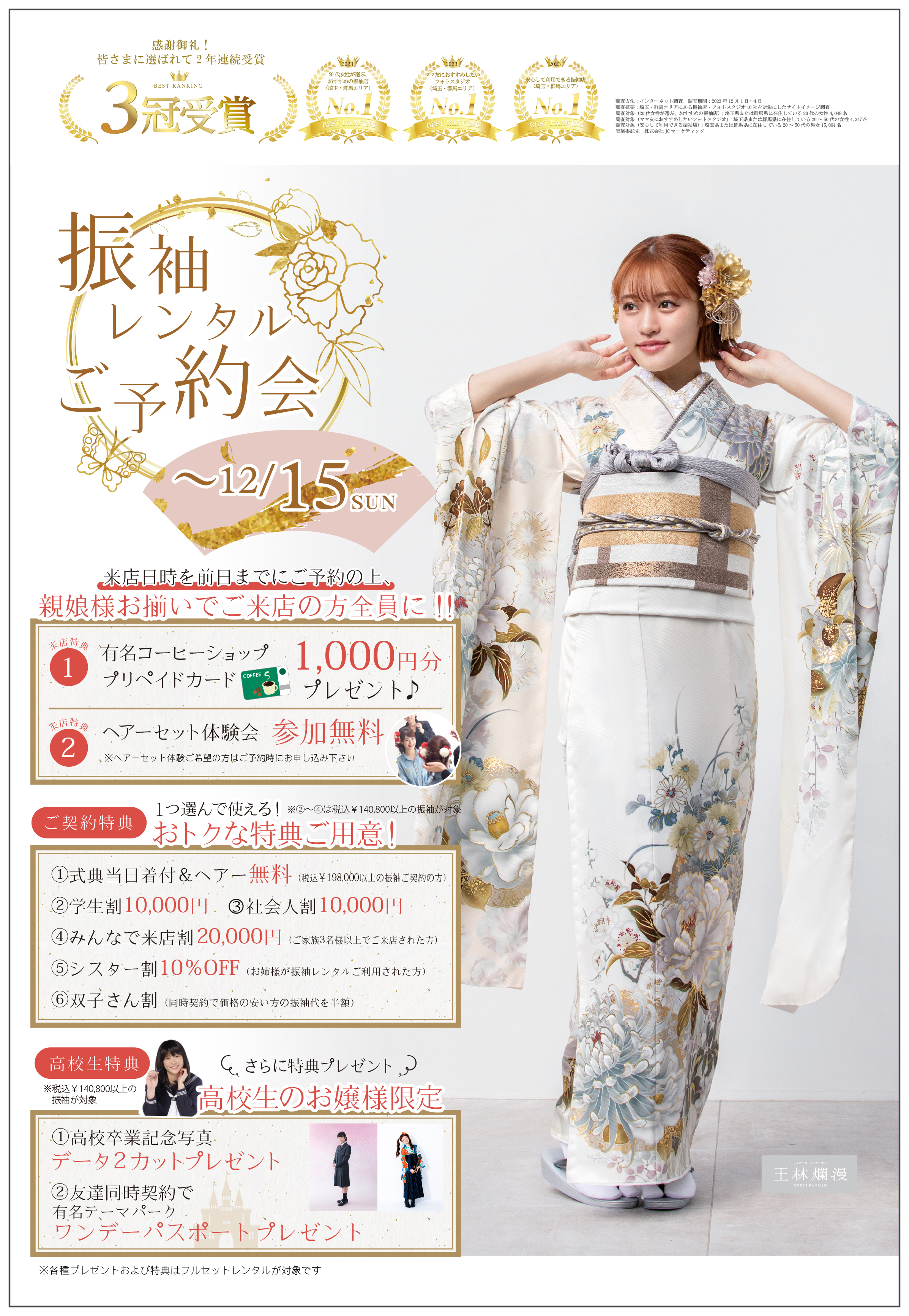 2024.11.30 お知らせ 深谷店 キャンペーン 上尾店 太田店 おすすめ情報 店鋪 全店で振袖展示会開催♪【~12/15(日)まで!】 ~12/15(日)まで、スタジオマックス全店で振袖展示会開催中です♪ 新柄はもちろんたくさんの振袖ご用意!! お好みの色、お好みの柄で一生に一度の成人式を着飾りましょう(^^♪ 是非この機会に一度お店にお越しください(*´ω`*) 事前に展示会へ来場予約をしていただた方全員に、1000円分の有名コーヒーショップのプリペイドカードプレゼント! ※展示会のご予約は空きが無くなり次第受付終了となりますのでお早めにご予約をおススメします! 他の振袖レンタルメニューはこちら お問合せ・ご予約はこちら 前の記事へ 一覧へ 次の記事へ