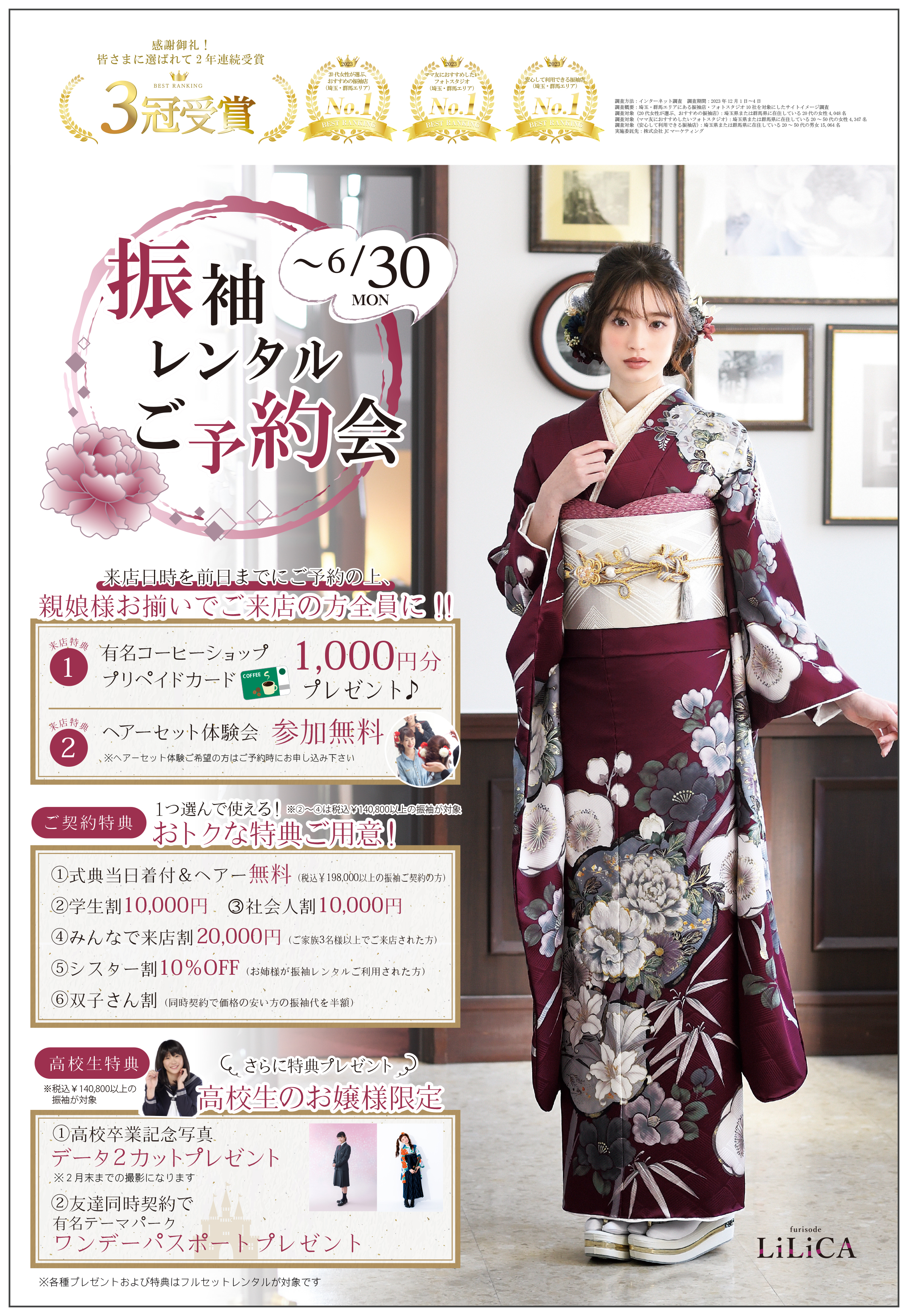 2025.5.31 お知らせ 深谷店 キャンペーン 上尾店 太田店 おすすめ情報 店鋪 全店 振袖展示会のご案内♪【2025年6月30日(月)まで!】 振袖展示会のご案内! 2025年6月30日(月)まで、スタジオマックス全店で振袖展示会開催中です♪ 新柄はもちろんたくさんの振袖ご用意!! お好みの色、お好みの柄で一生に一度の成人式を着飾りましょう(^^♪ さまざまな特典をご用意しております! ご家族みなさまでお出かけください♪ 振袖展示会ご来店希望の場合は、来店日時をご予約の上、お越しください(*´ω`*) ※展示会のご予約は空きが無くなり次第受付終了となりますのでお早めにご予約をおススメします! 他の振袖レンタルメニューはこちら お問合せ・ご予約はこちら 前の記事へ 一覧へ 次の記事へ